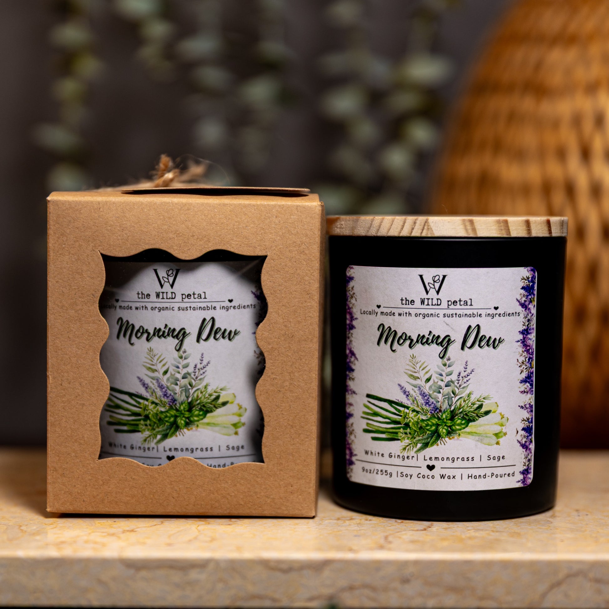 Bright and uplifting, Morning Dew captures the feeling of dawn breaking over a lush garden. Zesty lemongrass meets calming sage and earthy woods, awakening your senses while grounding your energy. It’s that clean, crisp breath of morning air that refreshes the soul.